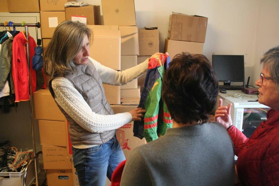 Denn Platz für die Waren ist rar im Caritas Kinder Laden, der in einer derzeit ungenutzten Dachwohnung im Caritas-Haus Unterschlupf gefunden hat. Nach lebendiger Diskussion einigt man sich darauf, Männer-Kleidung aus dem Sortiment zu nehmen. "Das sind immer so große Sachen, die viel Platz wegnehmen", erläutert Claudia Wilke, eine der Dienstältesten aus dem Team, die von Anfang an dabei ist. Frauenkleidung soll es dagegen weiterhin in geringem Umfange geben, denn oft suchen die Mütter für ihre Kinder passende Kleidung und nehmen dann gerne auch etwas für sich mit.