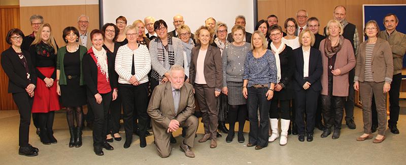 Die Vertreter aller 14 teilnehmenden Einrichtungen mit den Laudatoren von Bistum, Caritas und des durchführenden CoLibri Management Service während der Abschlussveranstaltung.C. Scharf/Caritas FD