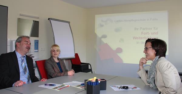 "Diözesan-Caritasdirektor Dr. Markus Juch zeigte sich bei der Besichtigung des neu hergerichteten Fortbildungs-Seminarraumes der Altenpflegeschule über die Erweiterung des Seminarspektrums der Lehreinrichtung sehr zufrieden. "Fort- und Weiterbildung spielen heute eine wesentliche Rolle", so der Caritasdirektor. "Die Berufsfelder entwickeln sich so rasant weiter, dass niemand mehr nach der Ausbildung ohne weitere Qualifikationen auskommt. Unser Fortbildungssegment der Altenpflegeschule ist ein Angebot an alle Einrichtungen, sich und ihre Mitarbeiter in jeder Hinsicht fit zu halten."