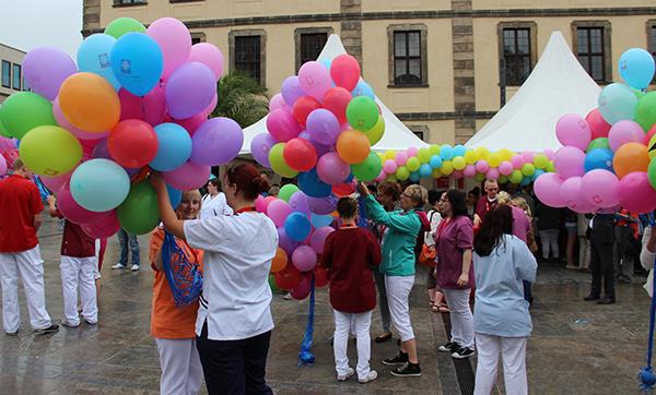 Noch schön festhalten bitte: Beim Flashmob für die Pflege stiegen erst auf Kommando die Luftballons in den regnerischen Fuldaer Himmel auf… Dr. Christian Scharf