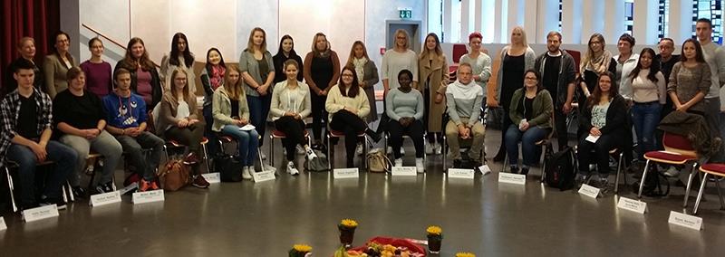 Unser Foto (Kursleiterin und Schulleiterin links außen im Bild) entstand nach der Begrüßung durch Schulleiterin Herbst.