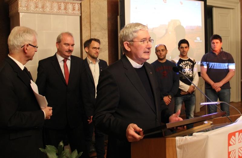 Für den zweiten Gewinner sprach Pfarrer Johannes Böttner, der sich dankbar und erfreut darüber zeigte, dass der Arbeit in seiner evangelischen Gemeinde von katholischer Seite ein Preis zuerkannt worden war. Im nordhessischen Projekt wollte man ausdrücklich den Flüchtlingsmännern eine Hilfe zur Integration bieten: Mit deutschen männlichen Mentroren an der Seite sollten sie die Möglichkeit erhalten, über Deutschland und die Rolle der Männer sowie auch das Verhältnis von Männern und Frauen und ihrem Umgang miteinander mehr zu erfahren. Zugleich sollten sie im neuen Lebensumfeld Unterstützung darin erfahren, ihre eigene Rolle neu zu bestimmen und - natürlich auch - Kontakte zu den Deutschen aufzubauen und zu festigen.