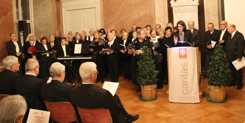 Dem Festakt vorausgegangen war ein Gottesdienst mit Generalvikar Prof. Dr. Gerhard Stanke in der Stadtpfarrkirche, und im Anschluss an die Feierstunde lud man die gesamte Festgemeinde im Schloss zu Gesprächen in lockerer Runde bei Imbiss und Getränken. Das Catering dafür hatte die Hauswirtschaftsgruppe der Carisma Werkstatt in Maberzell übernommen, und ein Team vom Jugendhilfeverbund St. Elisabeth in Gestalt einer kompletten Wohngruppe unbegleiteter minderjähriger Ausländer sorgte für den guten Service an der Theke. Für den feierlichen Rahmen in Gottesdienst und beim Festakt stand wiederum der CaritasChor 65+ bereit, der seit der ersten Ausschreibung die Elisabeth-Preisverleihungen stets musikalisch begleitet hat.