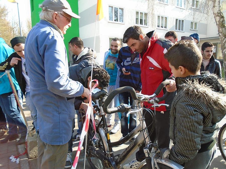 Ist das das richtige? Auf dem „Fahrradmarkt“ können vorhandene Räder begutachtet werden. Die Kaufpreise sind äußerst moderat und eher von symbolischer Bedeutung – Ziel ist der Mobilitäts- und Integrationsgewinn für die KäuferCaritas Kassel